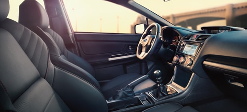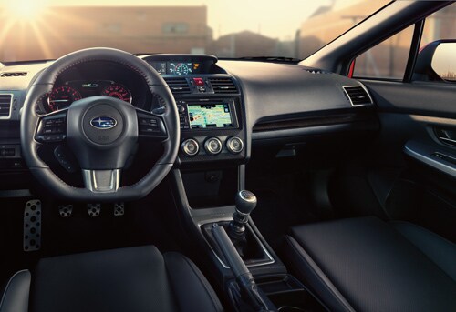 The high-performance feel starts as soon as the driver enters the 2015 WRX and grips the new flat-bottom, leather-wrapped steering wheel, which offers tilt and telescoping adjustments. The wheel integrates switches for audio and Bluetooth control.